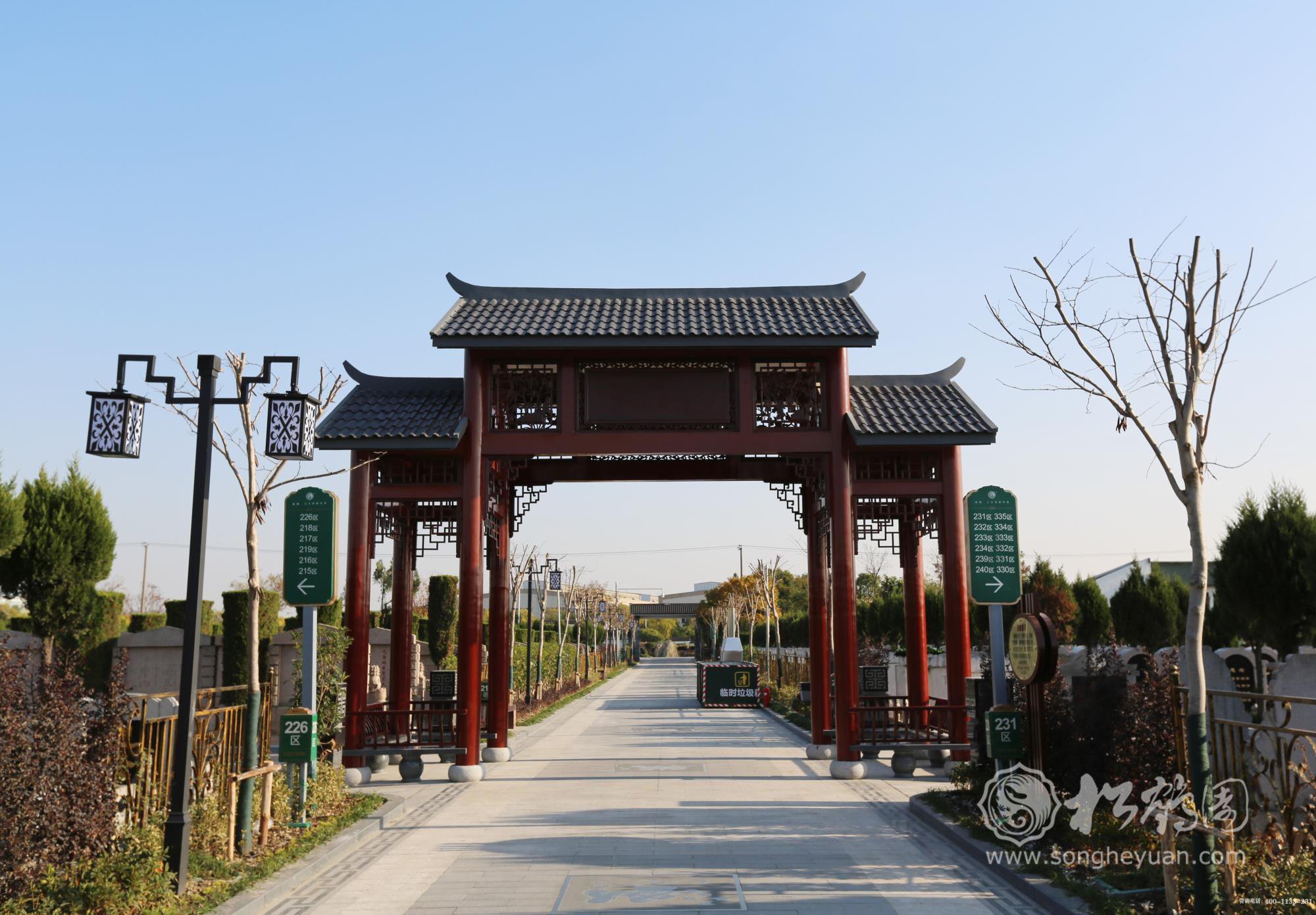 松鹤墓园不仅注重墓葬的多样化,更加注重建设符合中国传统文化的景观。如以“五行养生文化”为核心,着眼于健康长寿的理念的怡心园。分为怡心C11A/B和C12A/B区,双穴占地0.2㎡-0.25㎡。园内还建有多处文化景观,高高耸立的“五行柱”有“九五之尊”之意。