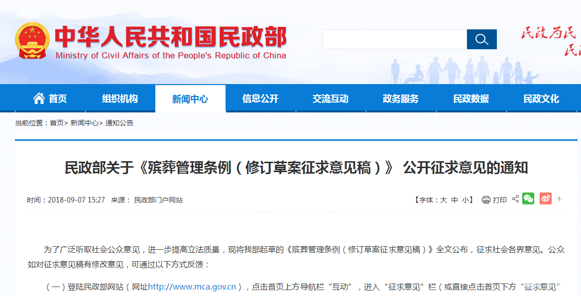附《殡葬管理条例》(修订草案征求意见稿)