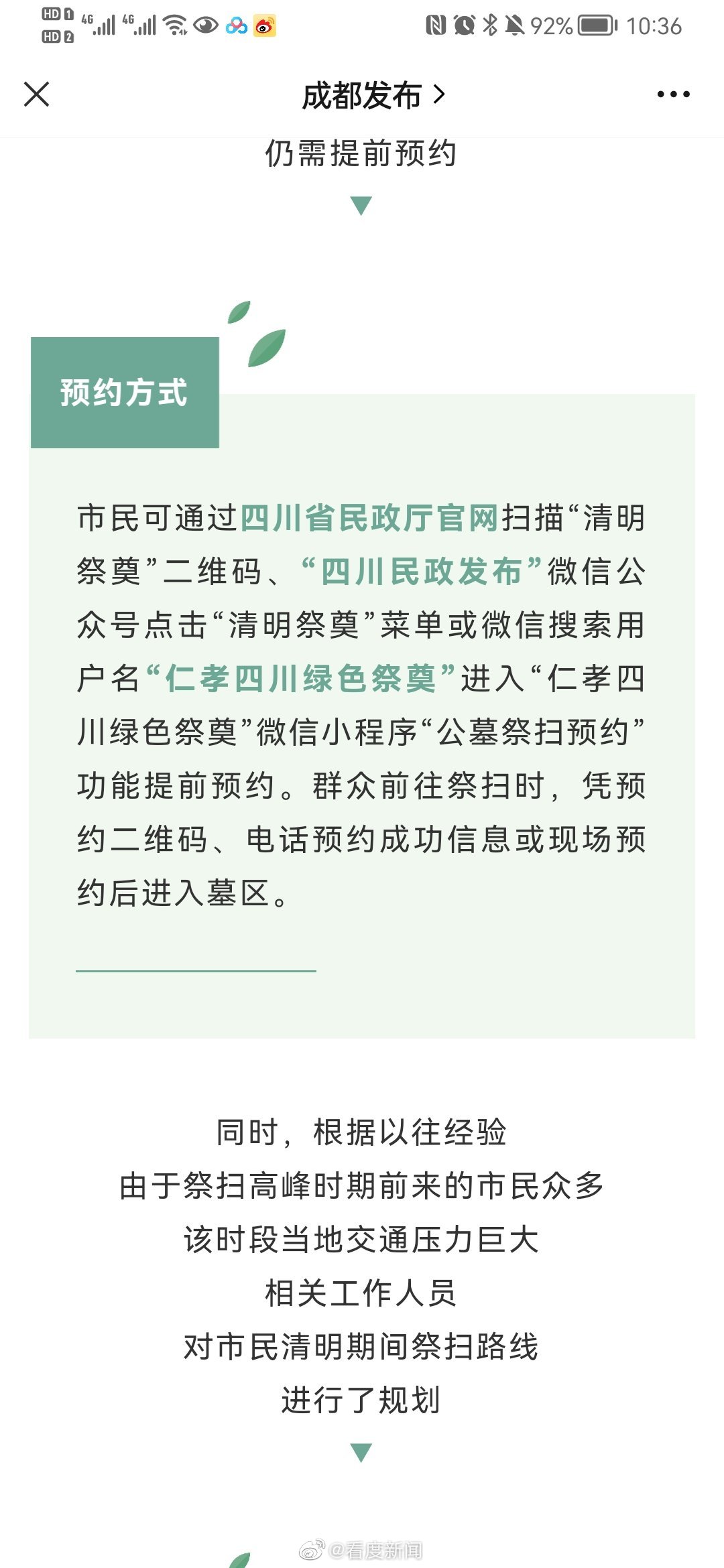 【#成都市民清明节实地祭扫需提前预约#】按照成都市民风俗,祭祀扫墓高峰时期也即将开始。注意啦,实地祭扫需提前预约。