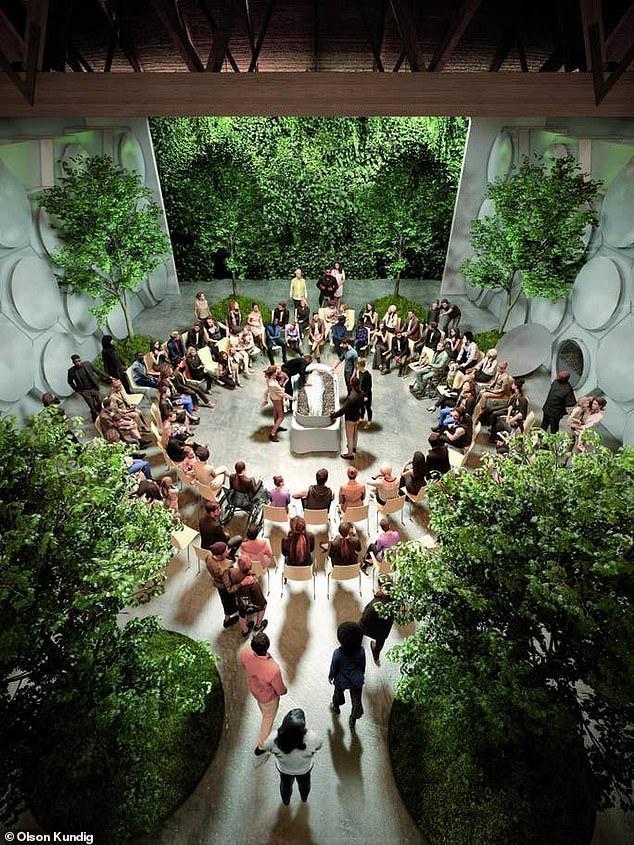 该项目位于西雅图的SoDo社区,公司将采用75个可重复使用的六角形容器来组成模块化系统,帮亲友举行悼念仪式提供了一个私密、宁静的空间。