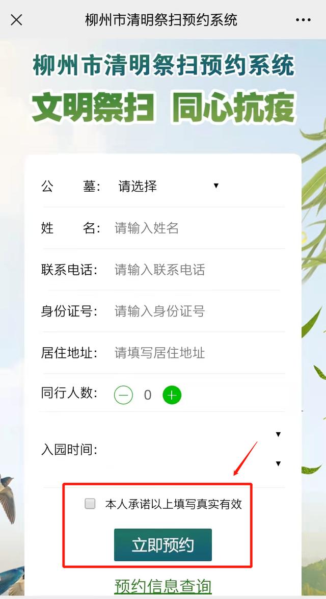按照操作提示,填写姓名、身份证号、预约祭扫的殡葬机构名称、预约祭扫日期和时段以及随同人员(最多2人随同)等相关信息,填写完毕后,点击页面底部的“立即预约”,提交后会出现“预约成功”的页面,再截图保存。
