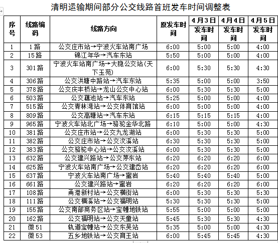 清明小长假期间,宁波调整轨道交通运营时间,具体方案如下: