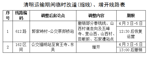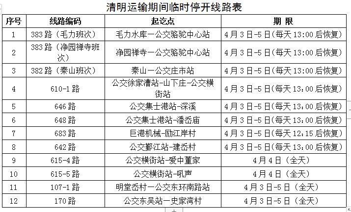 同时为保障公交专线和减轻道路交通压力,12条公交线路将临时停开(详见下表):