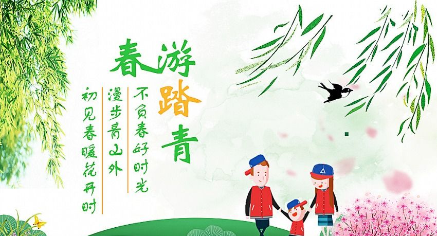 春回大地,到处呈现一派生机勃勃的景象,正是郊游的大好时光。踏青习俗由来已久,传说远在先秦时已形成,也有说始于魏晋。清明节,古人多到水边春游祭祀,除灾求福,主要是祈求人类的繁衍。千百年来,踏青渐成了一种仪式,我国民间长期保持着清明踏青游春的习俗。“逢春不游乐,但恐是痴人。”白居易的《春游》诗正是这种心境的写照。