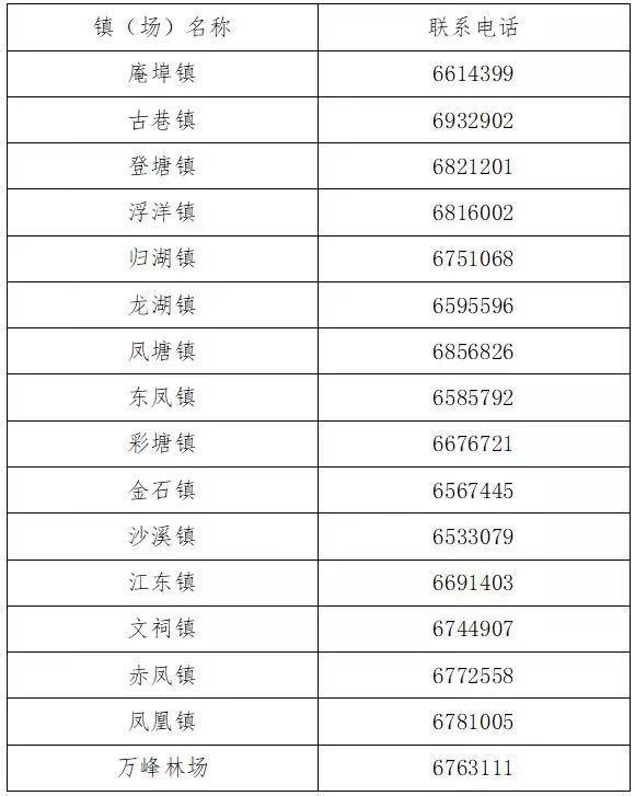 潮安区各镇(场)联系方式: