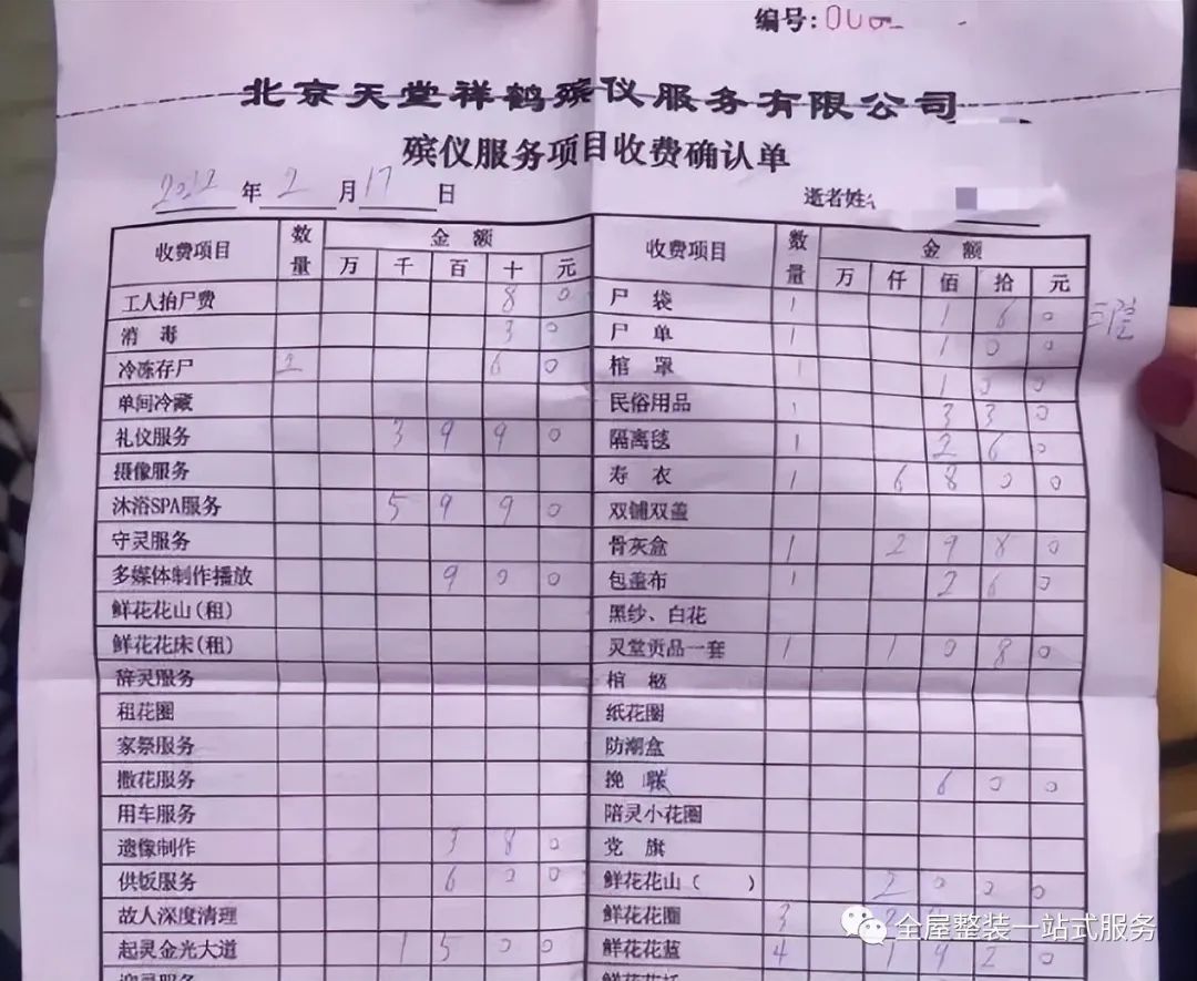 市民郑女士称,自己也遇到过类似的事,家里在3月底为婆婆办的葬礼,在太平间停放了3天就花了近2万。收费明细上除了“供饭服务”,还有“沐浴SPA”“起灵金光大道”等各类收费项目。