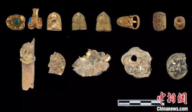 图为青海都兰热水墓群出土金器。 联合考古队 摄