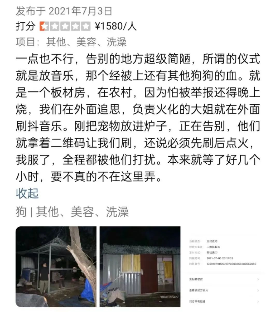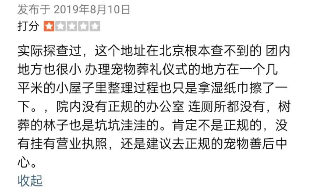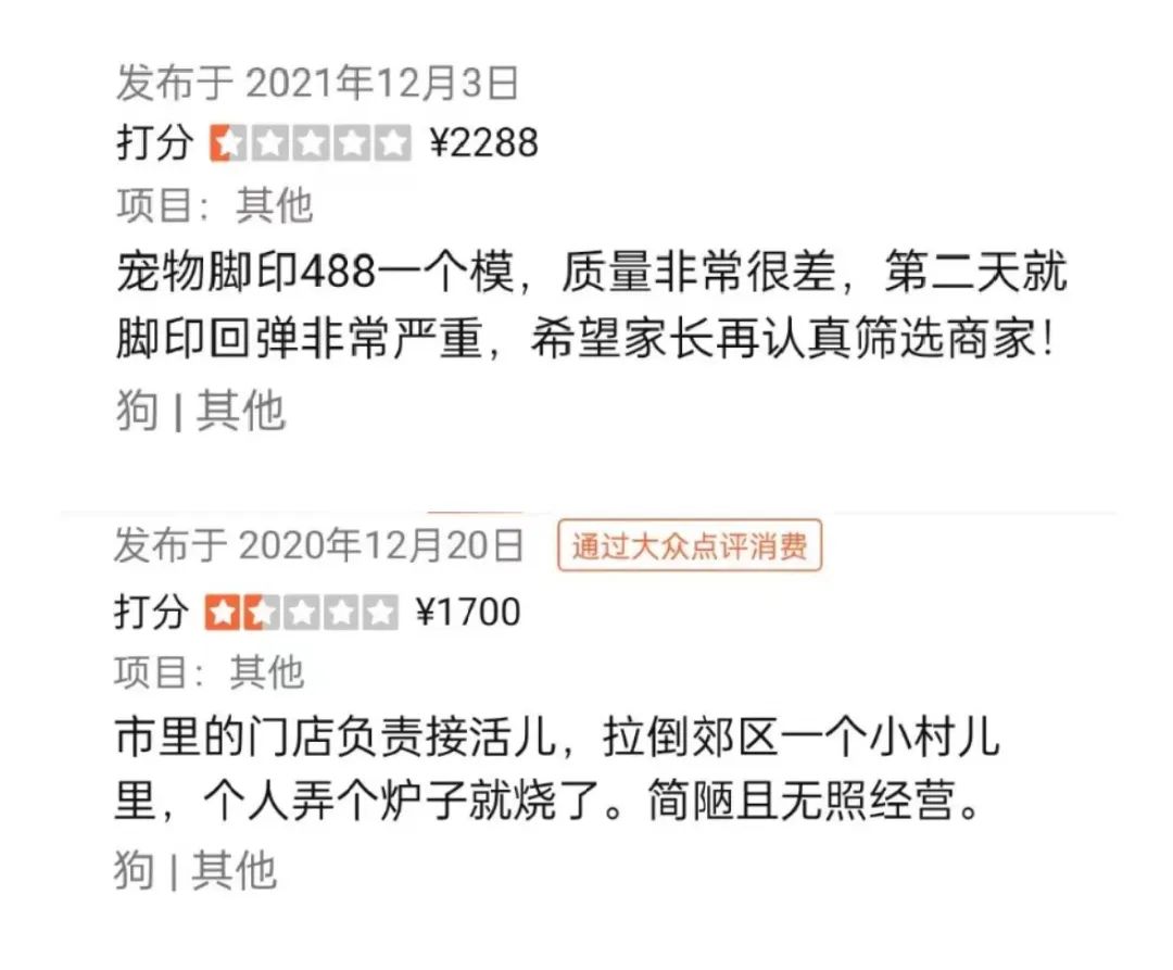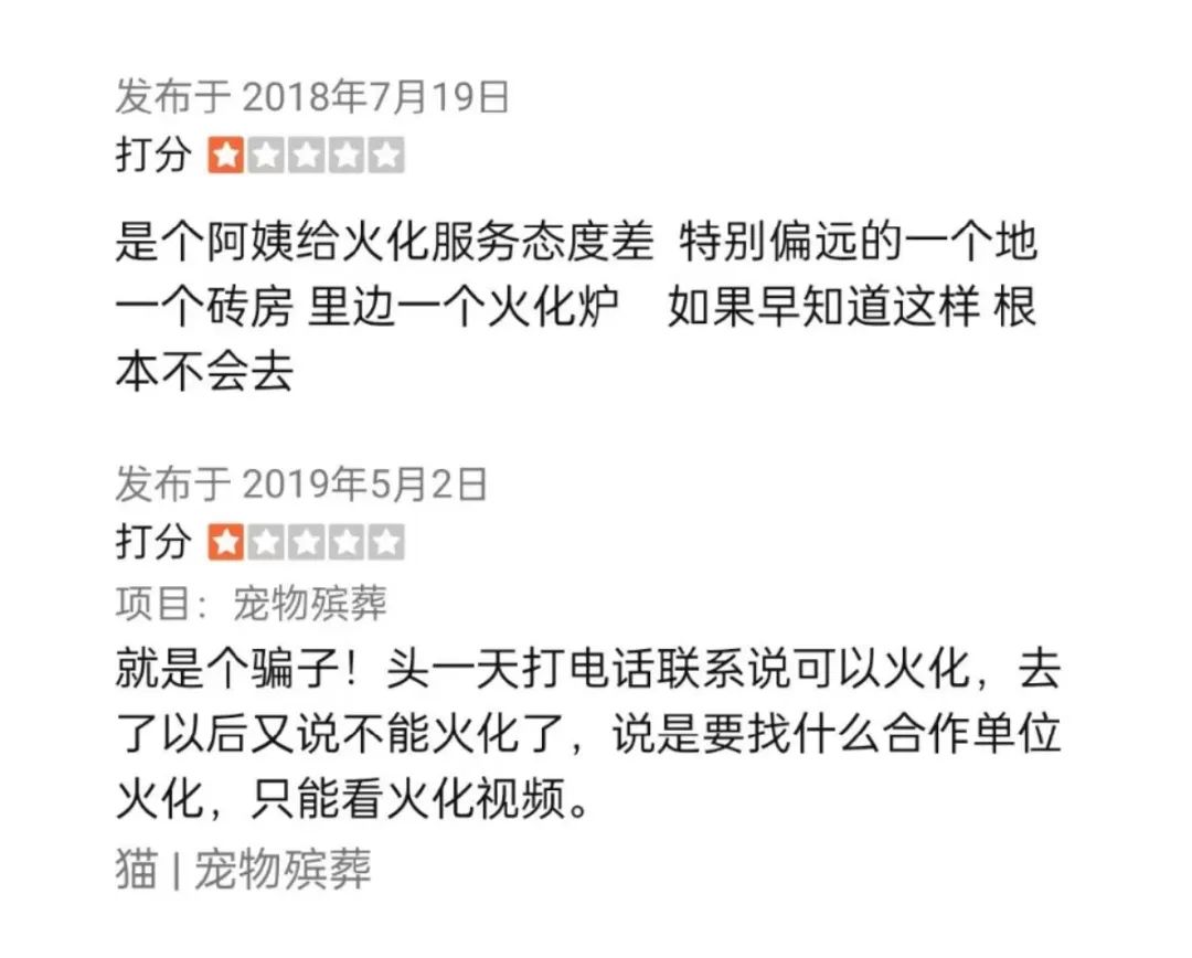 某本地生活服务平台上,关于宠物殡葬馆,有不少差评。