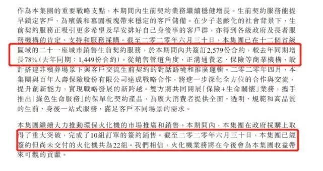 一是,生前契约依然维持着高速增长。今年上半年,福寿园已在十二个省级区域的二十一座城市销售生前契約服务,共签订2579份合约,较去年同期增长78%。在老龄化趋势愈发严重的背景下,该业务目前正吸引更多希望及早安排好自己身后事的客户群,发展潜力极大。